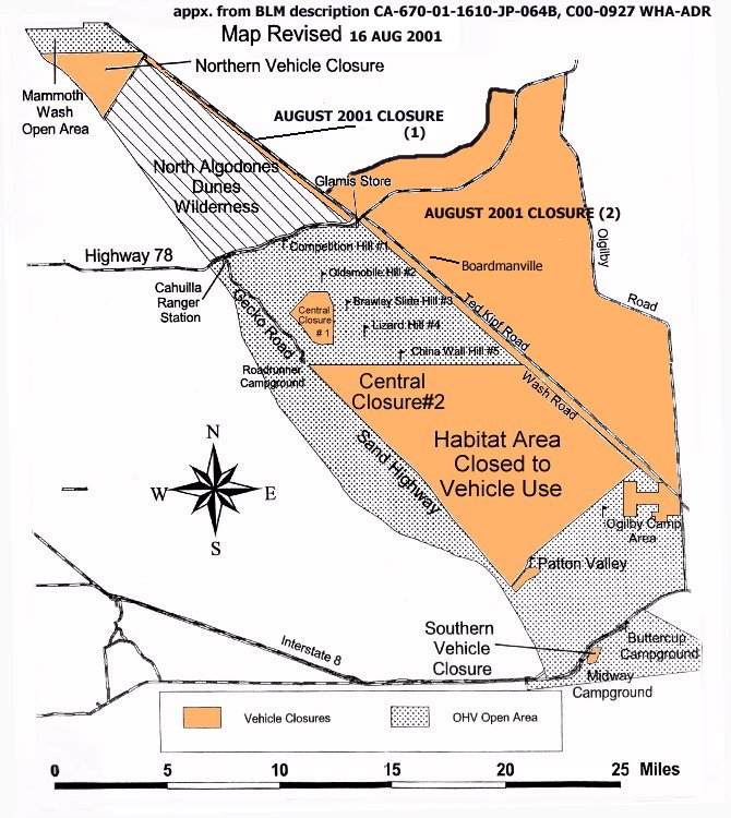 The closed area is the largest yet in the Glamis area. The action was taken by the Bureau of Land Management (BLM) August 8, by directive of the Center for Biological Diversity (CBD).