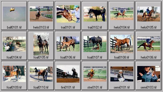 Registered users: Click on thumbnail to view full size. Captions down below. No password? Click here. Registration is free to the industry. Photos 19-36 Captions: ball0101.tif Moving van-sized hot air balloon floats in Louisville sky, Kentucky Derby Sports Journalism Seminar, 1997. helo0103.tif Hello at the first turn in practice, Kentucky Derby Sports Journalism Seminar, 1997. trai0101.tif Trainers show breeding thoroughbreds to journalism students at the Kentucky Derby Sports Journalism Seminar, 1997. trai0102.tif Passersby watch a trainer walking his thoroughbred at the Kentucky Derby Sports Journalism Seminar, 1997. helo0104.tif Hello on the backstretch in practice, Kentucky Derby Sports Journalism Seminar, 1997. helo0105.tif Hello in practice, Kentucky Derby Sports Journalism Seminar, 1997. foal0104.tif Journalism students see a week-old thoroughbred foal and mother, Hermitage Farm, Kentucky Derby Sports Journalism Seminar, 1997. foal0105.tif A week-old thoroughbred foal and mother, Hermitage Farm, Kentucky Derby Sports Journalism Seminar, 1997 foal0106.tif A two-day-old thoroughbred foal and mother, Hermitage Farm, Kentucky Derby Sports Journalism Seminar, 1997 foal0107.tif A two-day-old thoroughbred foal and mother, Hermitage Farm, Kentucky Derby Sports Journalism Seminar, 1997 foal0108.tif A week-old thoroughbred foal and mother, Hermitage Farm, Kentucky Derby Sports Journalism Seminar, 1997 helo0106.tif Hello on the backstretch in practice, Kentucky Derby Sports Journalism Seminar, 1997. foal0109.tif Trainers show a week-old thoroughbred foal and mother to sports journalism students, Hermitage Farm, Kentucky Derby Sports Journalism Seminar, 1997. foal0110.tif Trainers show a week-old thoroughbred foal and mother to sports journalism students, Hermitage Farm, Kentucky Derby Sports Journalism Seminar, 1997. fini0101.tif Classic finish-line shot with towers in background, Kentucky Derby Sports Journalism Seminar, 1997. stre0101.tif Homestretch, Kentucky Derby Sports Journalism Seminar, 1997. semi0101.tif Sports journalism students, Kentucky Derby Sports Journalism Seminar, 1997. semi0103.tif Karen Pierce just tripled her money, Kentucky Derby Sports Journalism Seminar, 1997. Home Browse Search Contact Subscribe Return to Galleries 20:21 01 APR 1998 All photos and content copyright © 1981-2010 PHOTOSPORT.COM. All Rights Reserved. |
