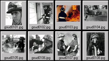 | goud0101.tif | Beth Goudreau of Fresno City Fire #4 looks grimy and tired after her first blaze. | |