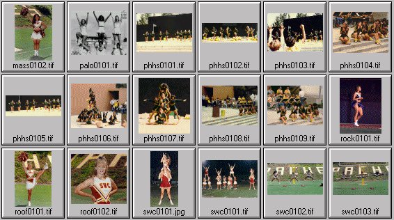 Registered users: Click on thumbnail to view full size. Captions down below. No password? Click here. Registration is free to the industry. Photos 109-126 Captions: mass0102.tif Portrait of Samantha Massengill, Southwestern College, taken for football program, 1993, Chula Vista, California. palo0101.tif Cheerleaders for Palomar College, Vista, California, 1992. phhs0101.tif Varsity cheerleaders for Patrick Henry High School perform at pep rally, 1980. phhs0102.tif Varsity cheerleaders for Patrick Henry High School perform at pep rally, 1980. phhs0103.tif Varsity cheerleaders for Patrick Henry High School perform at pep rally, 1980. phhs0104.tif Varsity cheerleaders for Patrick Henry High School perform at pep rally, 1980. Michele Cusick, ?, Lori Groves (d.1985), ?, Suzette Stebel, ? phhs0105.tif Varsity cheerleaders for Patrick Henry High School perform at pep rally, 1980. Lori Groves (d.1985), ?, Suzette Stebel, ?, ?, ? ,? ,? phhs0106.tif Varsity cheerleaders for Patrick Henry High School perform at pep rally, 1980. phhs0107.tif Varsity cheerleaders for Patrick Henry High School perform at pep rally, 1980. phhs0108.tif Varsity cheerleaders for Patrick Henry High School perform at pep rally, 1980. phhs0109.tif Varsity cheerleaders for Patrick Henry High School perform at pep rally, 1980. Michele Cusick, ?, Lori Groves(d.1985), ?, Suzette Stebel, ? rock0101.tif Random cheerleader at Rocker Soccer, July 1994 roof0101.tif Becky Roofener, cheerleader for Southwestern College, for football program, 1993. roof0102.tif Becky Roofener, cheerleader for Southwestern College, for football program, 1993. swc0101.tif Southwestern College cheerleaders do halftime performance during football game, 1992. Far right, base: Amanda Brown. swc0102.tif Southwestern College cheerleaders do stunt for football program, 1992. swc0103.tif Southwestern College cheerleaders do stunt for football program, 1992. NEXT 18 PREVIOUS 18 RETURN TO CHEER MAIN Home Browse Search Contact Subscribe Return to Galleries 20 FEB 1998 All photos and content copyright © 1981-2010 PHOTOSPORT.COM. All Rights Reserved. |