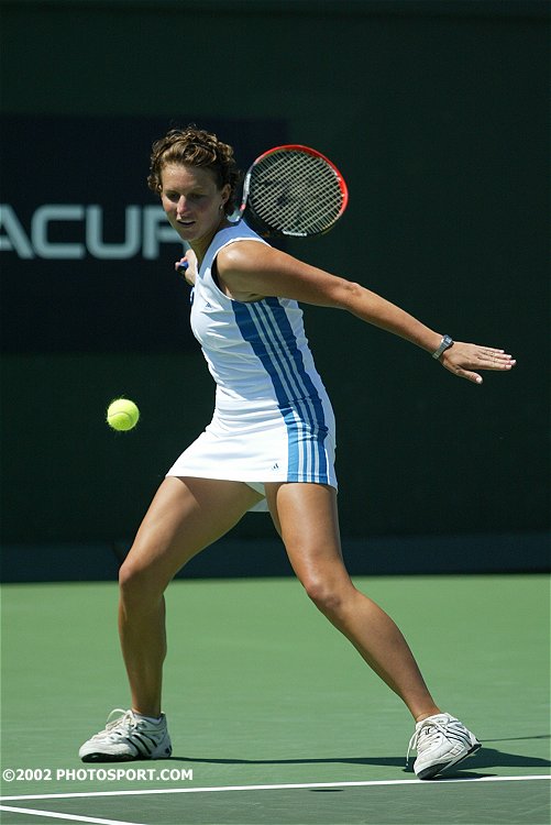 Corina Morariu returns volley at the TIG Tennis Classic, San Diego, August 1999 Photo©1999 PHOTOSPORT.COM