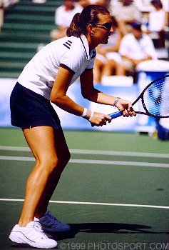 She did this by winning Wimbledon doubles this year with Lindsay Davenport. She seems to be becoming a doubles specialist, winning six majors with three different partners in 1999 so far. Born in Detroit, she represents USA in international competition, including the 1996 Olympics. UPDATE: Corina has not played this season because she is battling cancer, and by all accounts, winning. UPDATE: 19 MAR 2002: Corina is in remission and she is returning to the WTA Tour. Click here for more. UPDATE: 31 JUL 2002: Corina is back in action looking better than ever at the Acura Classic. Corina's Record - (since 1995)